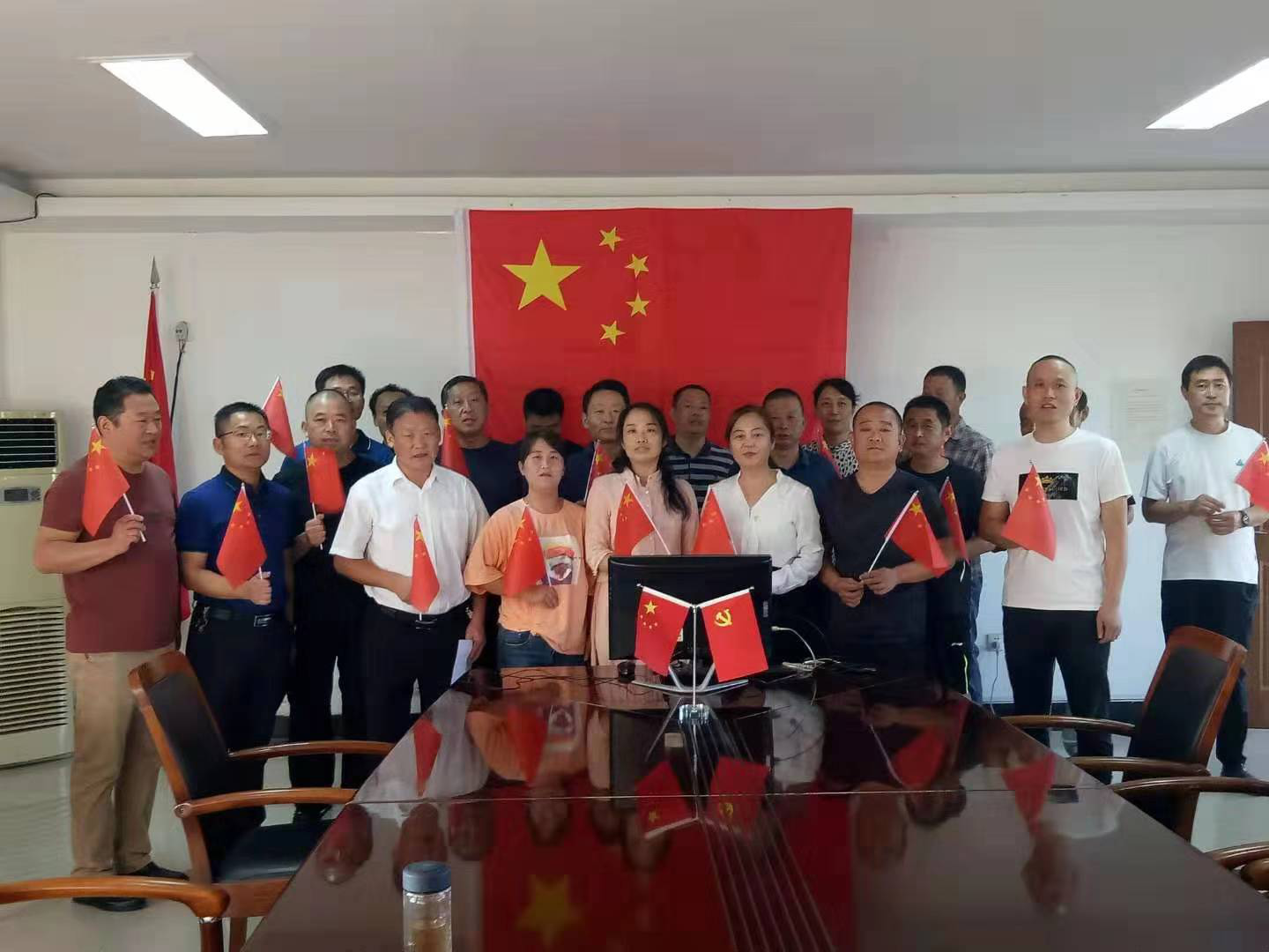 當《義勇軍進行曲》音樂響起,阜陽市鹽業(yè)人揮舞著五星紅旗齊聲高唱“起來,不愿做奴隸的人們……”,雄壯嘹亮的國歌聲,在黨員活動室內久久回蕩。隨后,大家又齊聲高歌《歌唱祖國》,“五星紅旗迎風飄揚,勝利歌聲多么響亮”,唱出對中華人民共和國成立70周年最美好的祝福和熱愛。