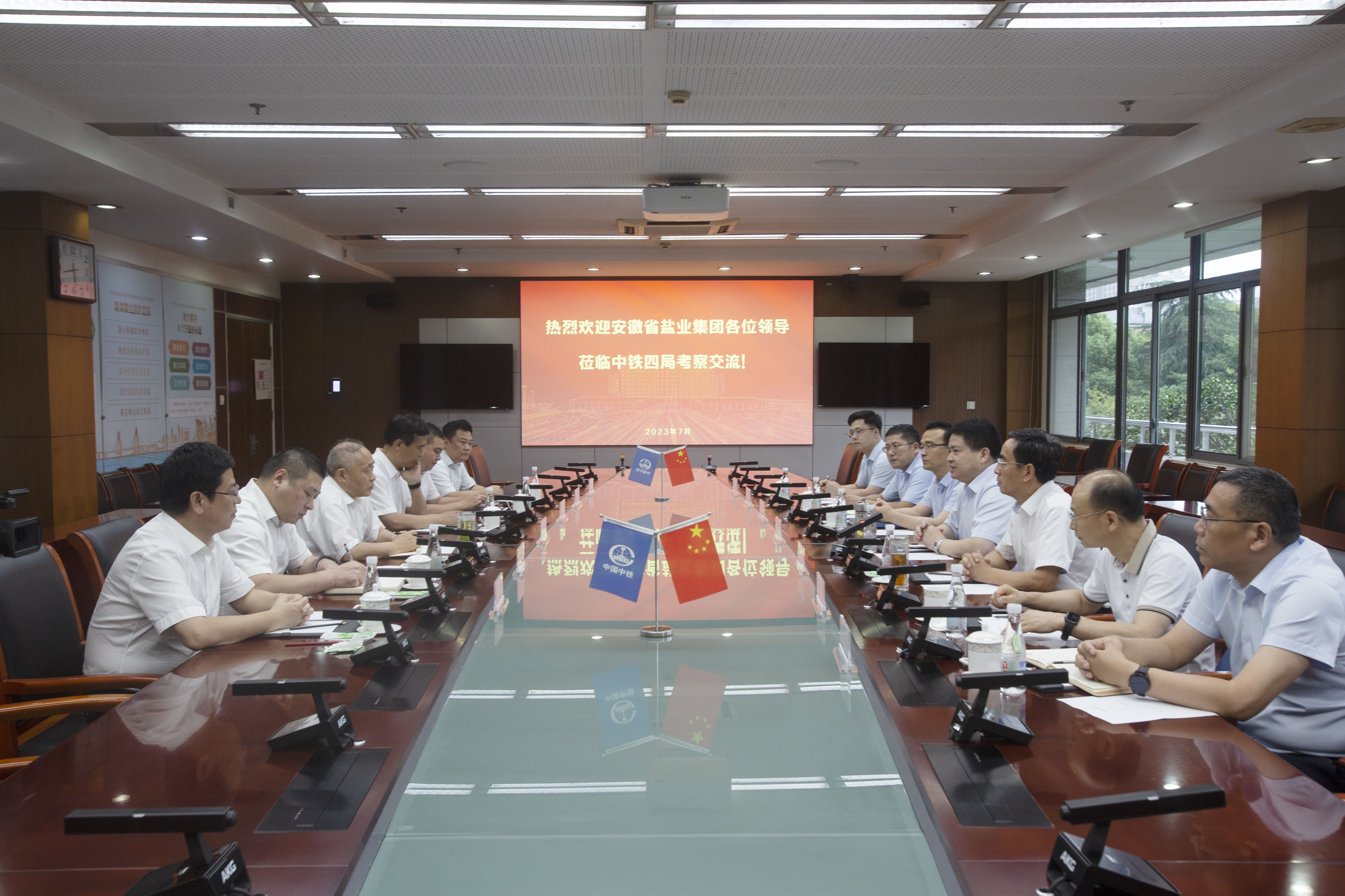 7月18日,省鹽業集團黨委書記、董事長羅太忠,黨委副書記、總經理、董事王思軍拜訪中鐵四局集團黨委書記、董事長劉勃,雙方就進一步深化合作進行座談交流。