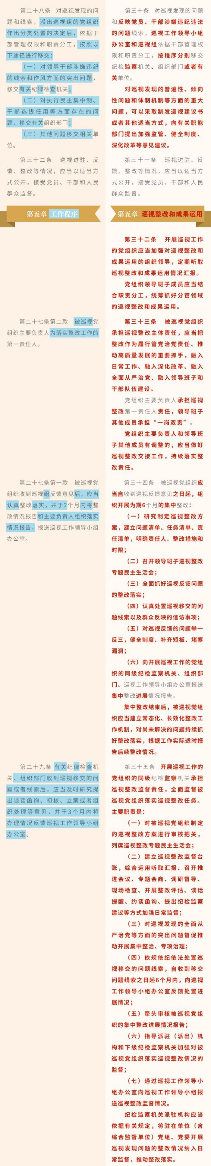 《中國共產黨巡視工作條例》修訂條文對照表