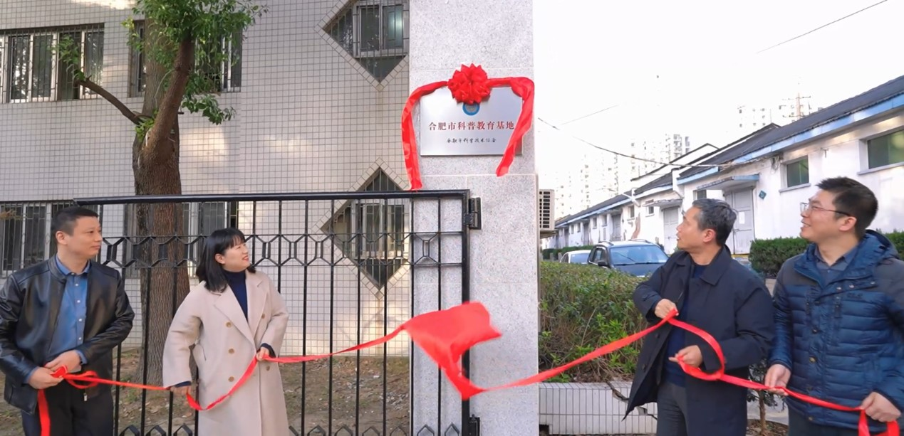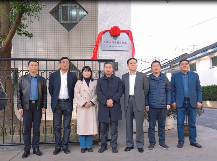 座談會后,出席儀式的領(lǐng)導(dǎo)共同為“合肥市科普教育基地”揭牌,并合影留念。